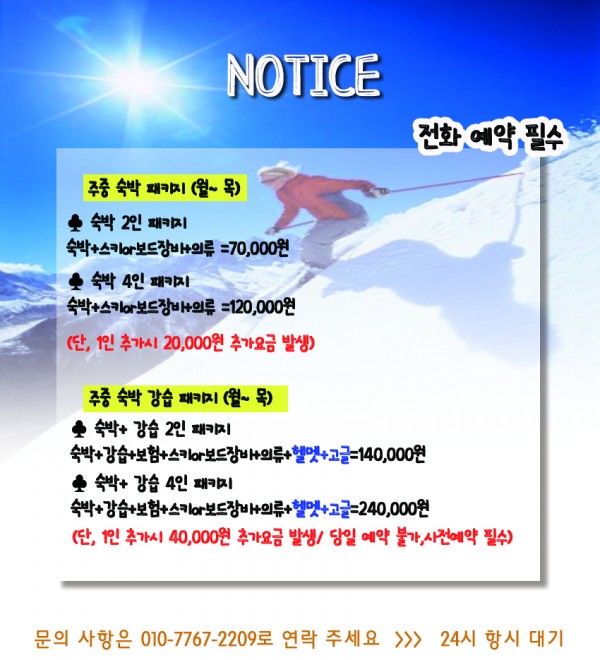 2021/22 비발디파크 스키,보드 강습 + 숙박 패키지이벤트!!